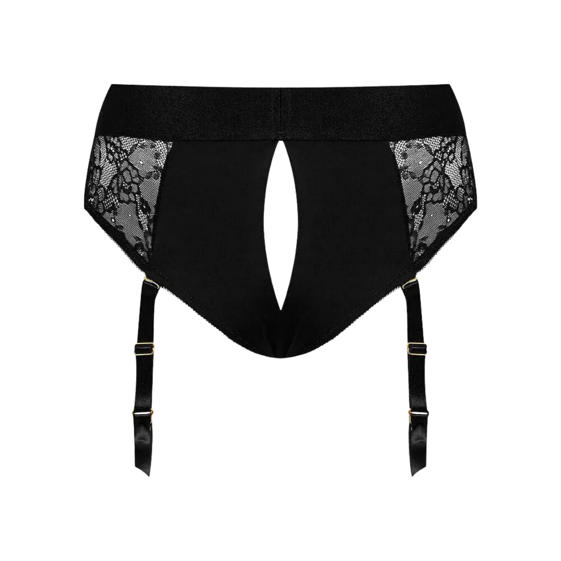 Elegant and comfortable, this lace harness blends refined style with functional support. The soft microfiber and lace construction creates a flattering silhouette, while the elastic waistband and adjustable garter-style straps provide a secure, flexible, and personalized fit.
